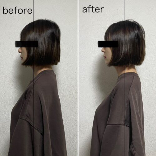 施術後は巻き肩の改善とバスト位置の変化も見られました。
